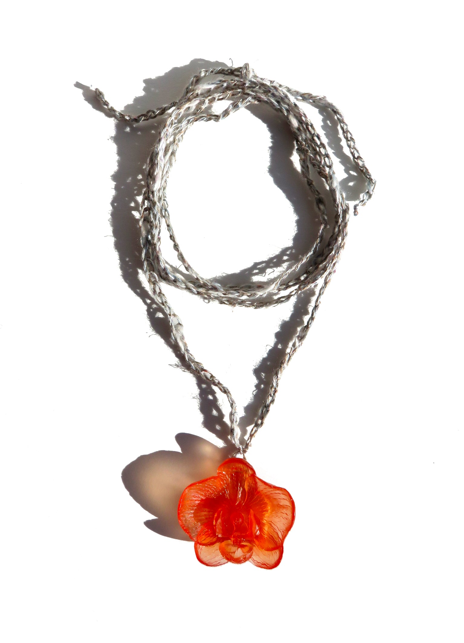 The Orchidée is the essense of our new summer collection. We created unique resin pendant with specific color variations. The chain is croched. You can wear it as necklace or belt.
