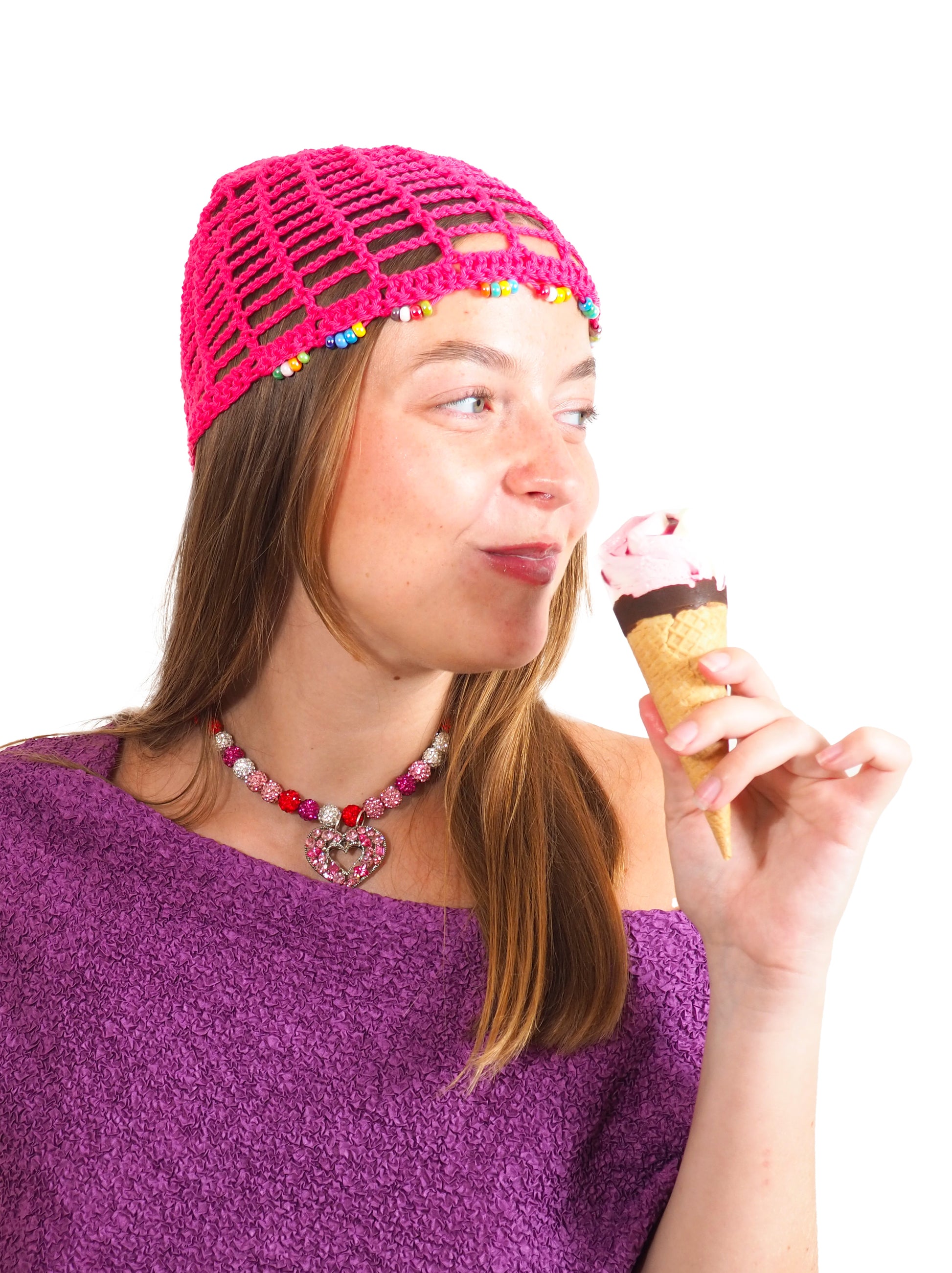 This crochet hat is inspired by tennis net. It is made of cotton handmade in France.