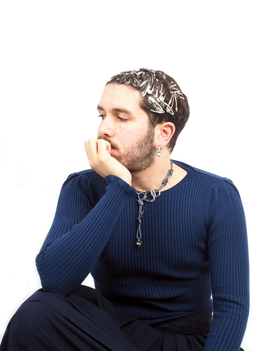 ENIL STUDIO's winter collection is all about exploring new designs, materials and technics. Exclusively, we shopped new vintage treasures and chains and transformed them into intemporel pieces.. This next chapter allows you to create a full look crafted from all our products. We collaborated with nanies to hand knitted exclusive pieces to warm you up into this cold winter.